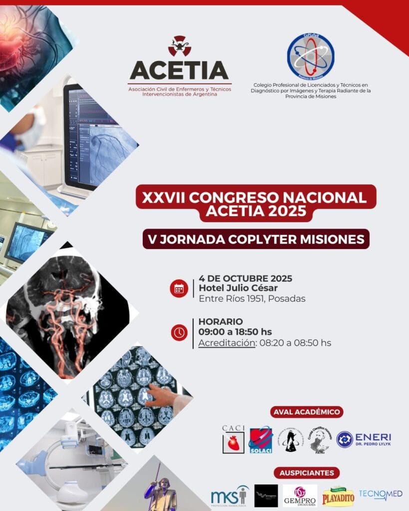 Posadas, Misiones será sede de un destacado evento en el ámbito de la salud intervencionista. El próximo sábado 4 de octubre de 2025, se llevará a cabo el XXVII Congreso Nacional ACETIA 2025, en conjunto con la V Jornada COPLYTER Misiones, en el tradicional Hotel Julio Cesar de la ciudad capital. Un punto de encuentro […]